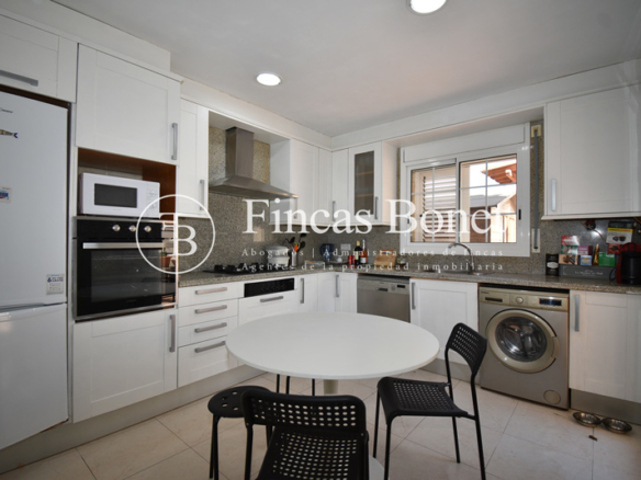 gran cocina oficce también con salida a jardín, habitación y baño con plato de ducha.
