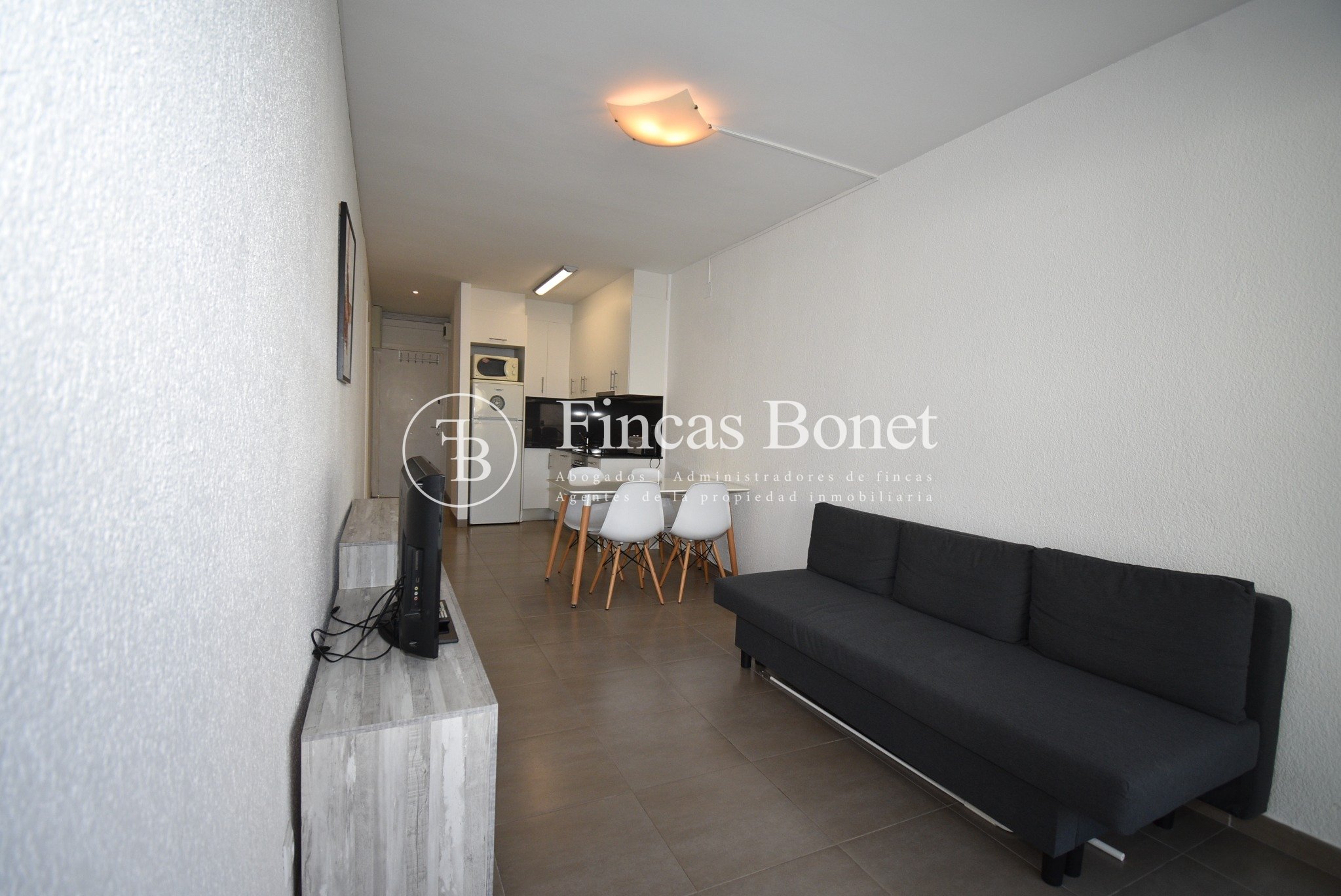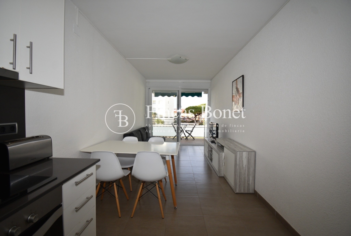 Tiene comedor con salida a la terraza y sofá cama. La cocina abierta a comedor