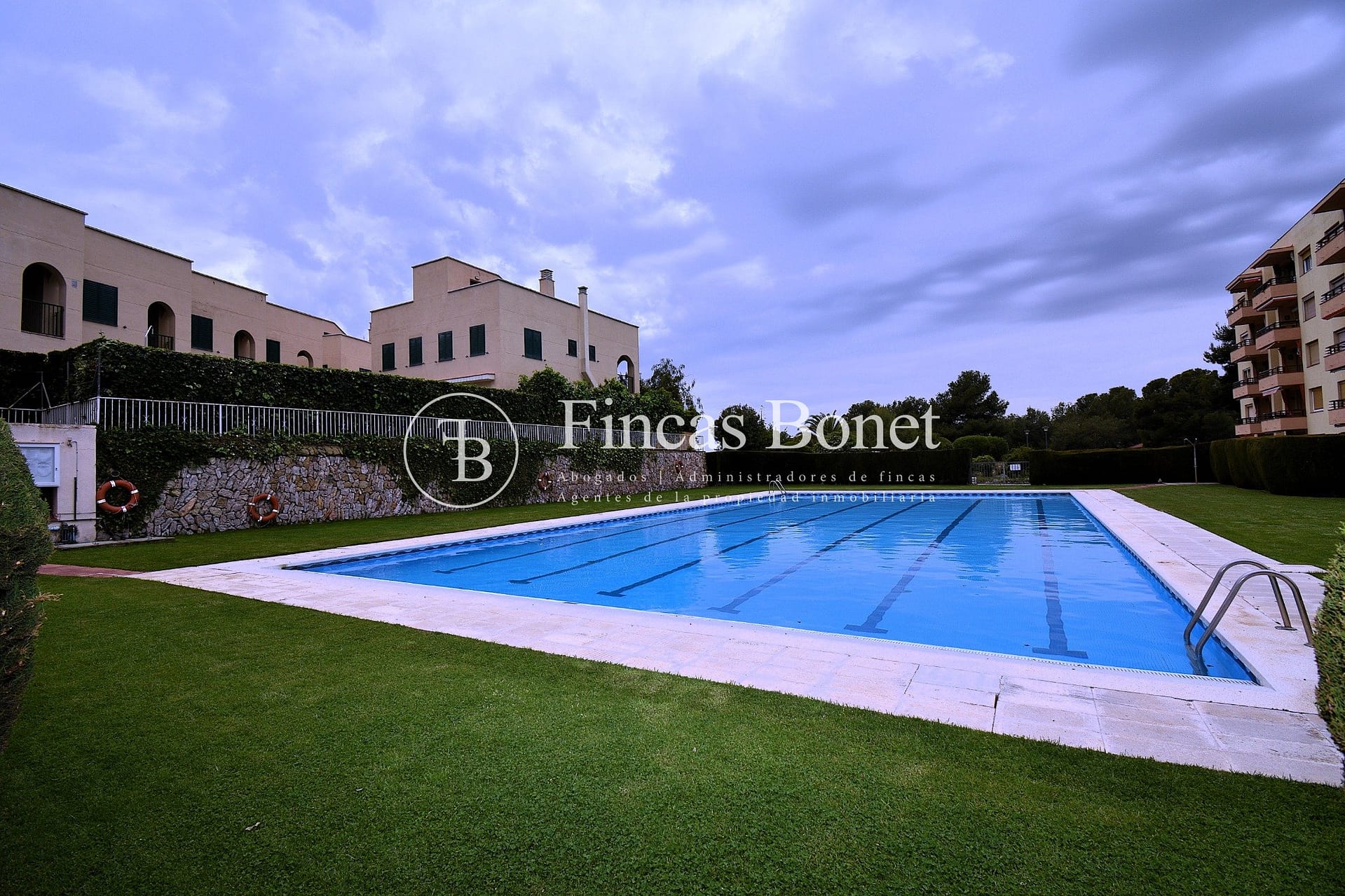 Zona comunitaria con piscina y zona ajardinada.