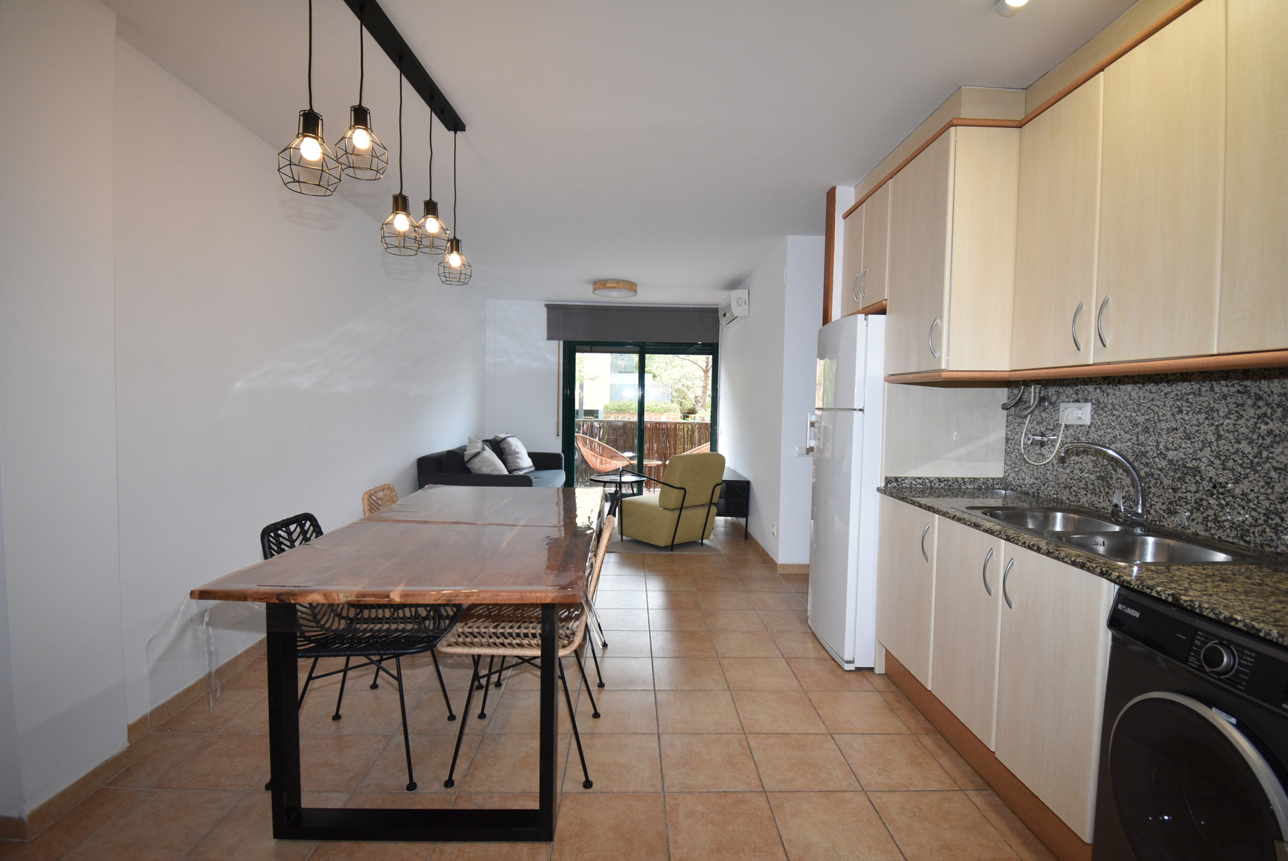 Cocinaintegrada a comedor, dos dormitorios dobles , 1 baño con plato de ducha.