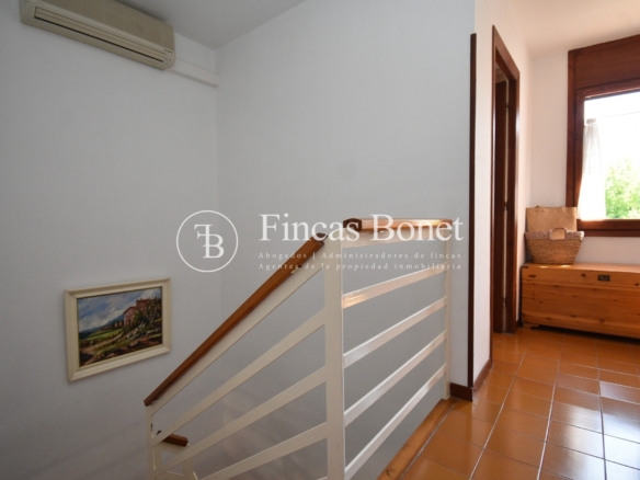 Podemos acceder a la casa por calle Jaime 1º o por zona de aparcamiento. A través de jardín accedemos al interior de la casa. En planta baja: salón comedor, cocina, galería y aseo de cortesía. Del salón comedor mediante gran ventanal se pasa al jardín/terraza de entrada. Si subimos a la primera planta, a la cual se accede mediante escalera interior encontramos hall distribuidor a tres dormitorios. Todos amplios y dos de los cuales con armario empotrado. De habitación principal salida a terraza. Y un baño completo con plato de ducha.