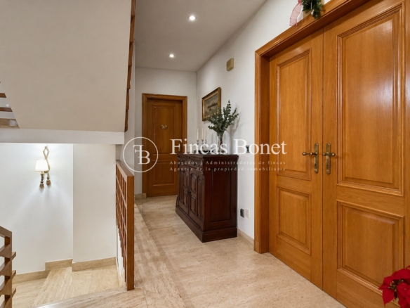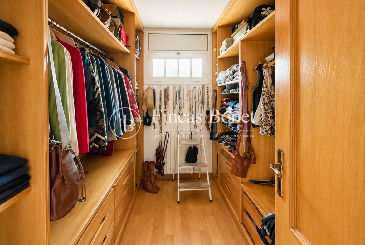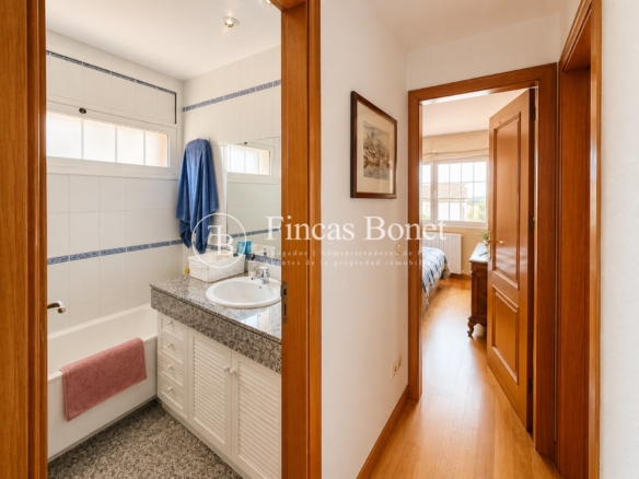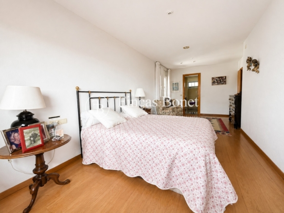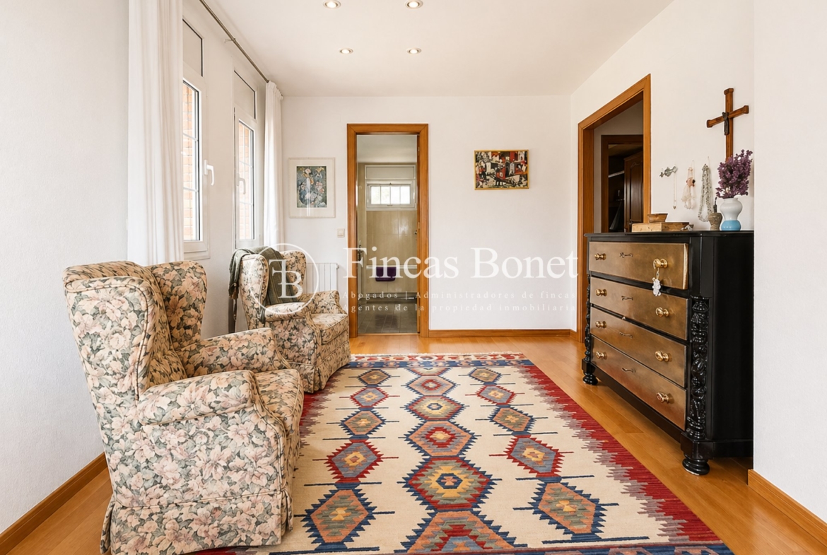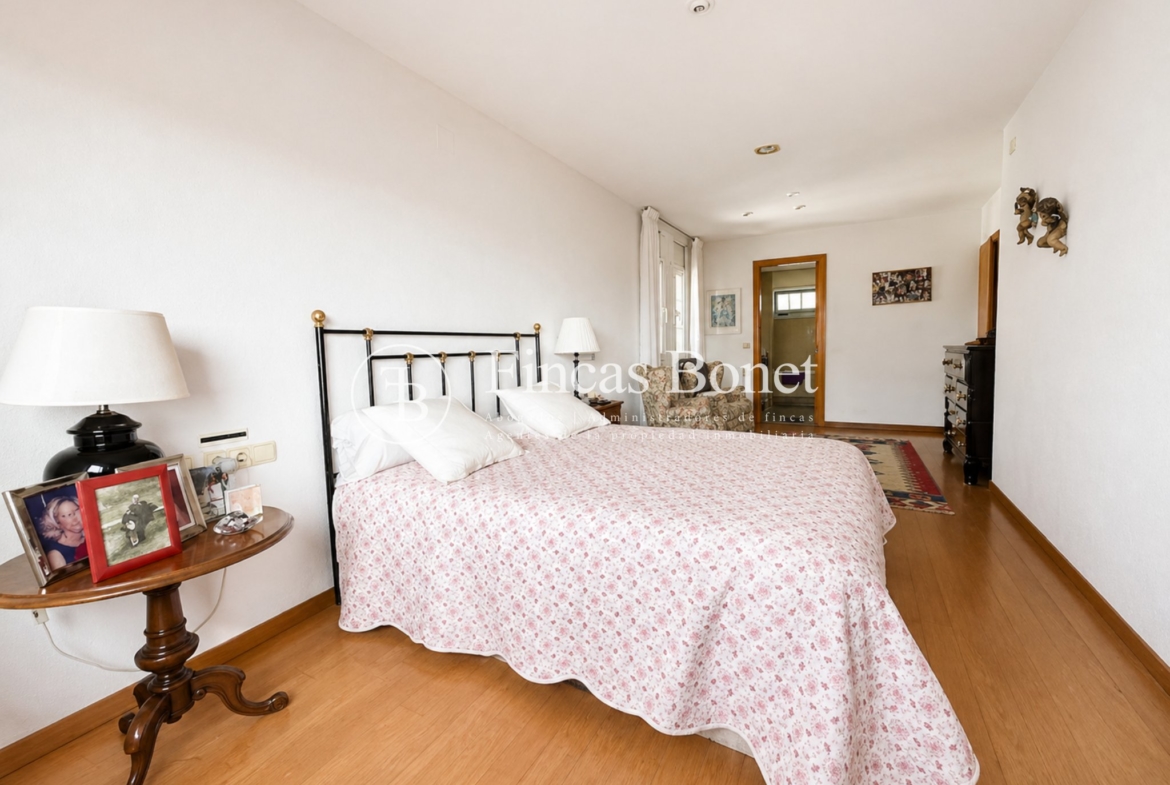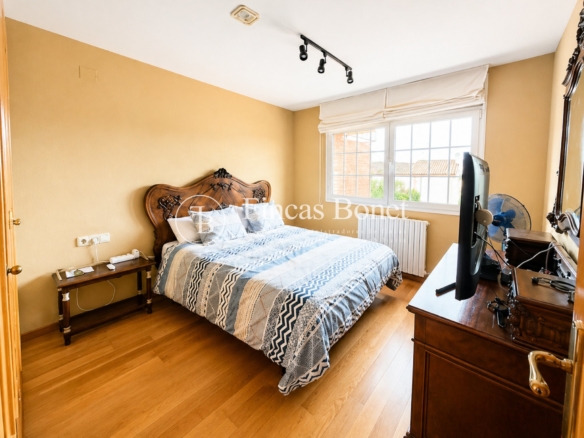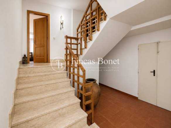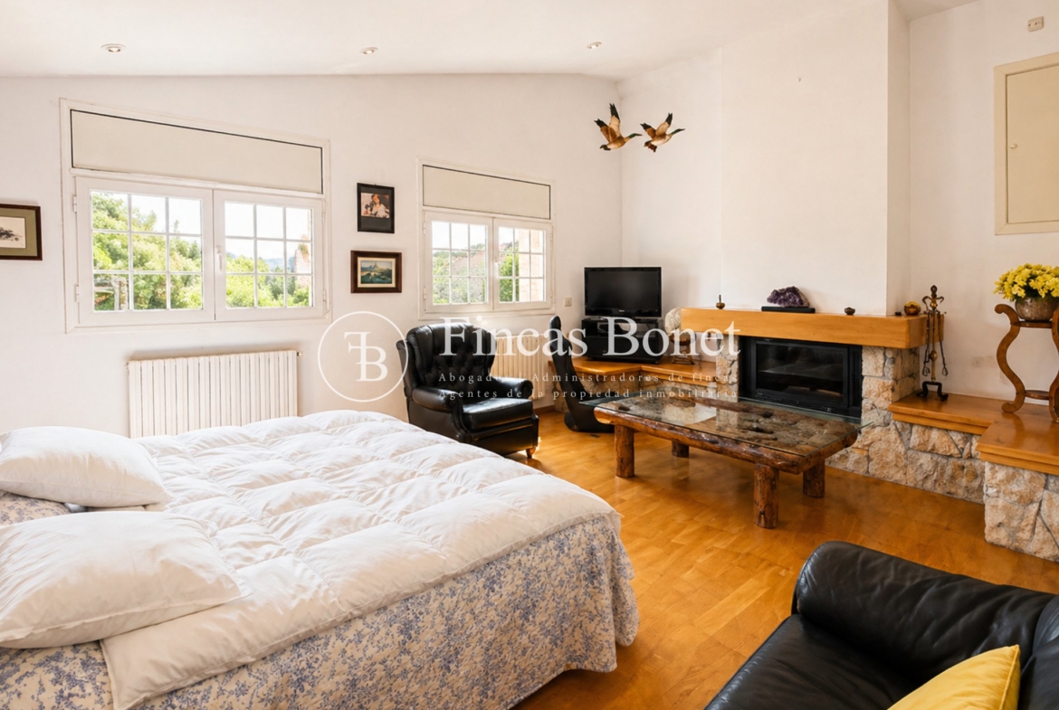 Mediante espectacular escalera interior accedemos a los cinco dormitorios y cinco baños, lo que da comodidad para familias numerosas o para recibir invitados. La habitación principal tipo suite, con mayor dimensión y baño integrado, generando un espacio más reservado dentro del conjunto.