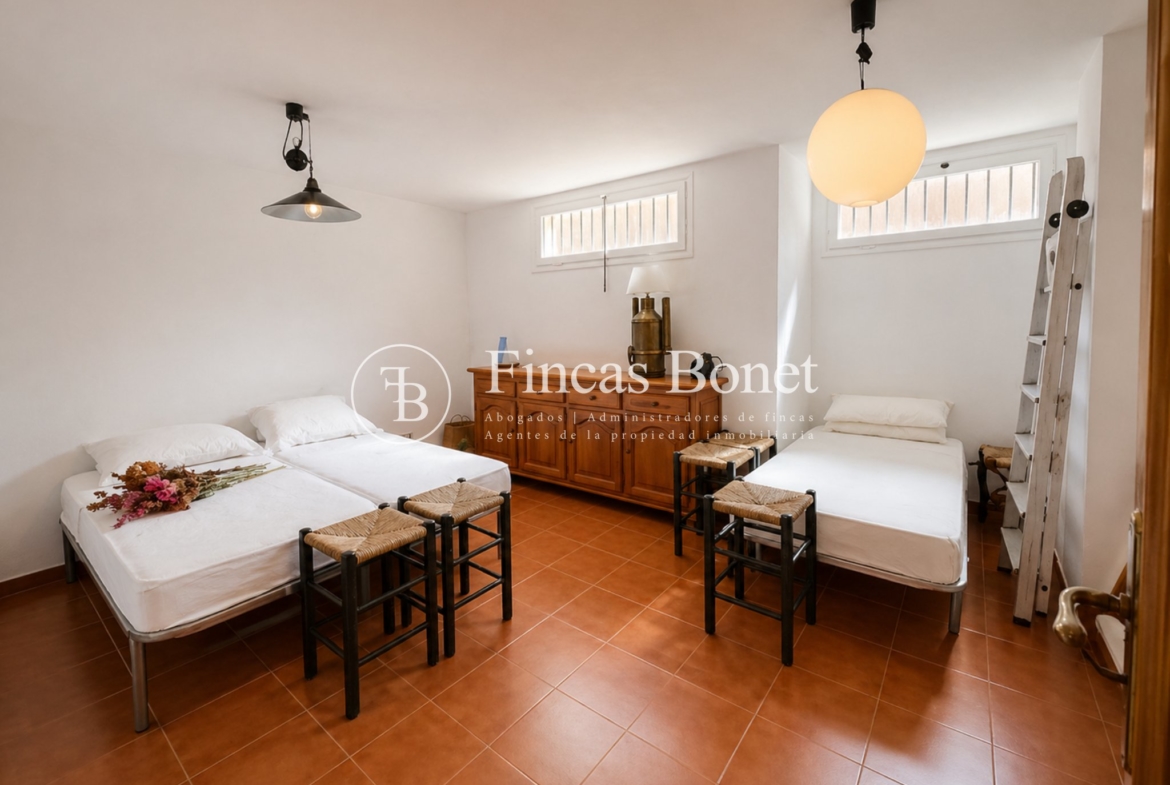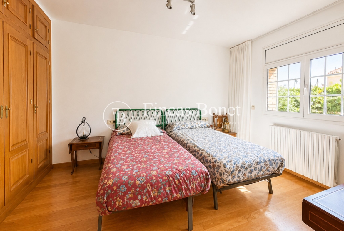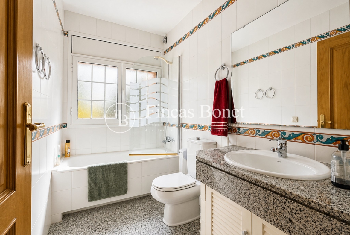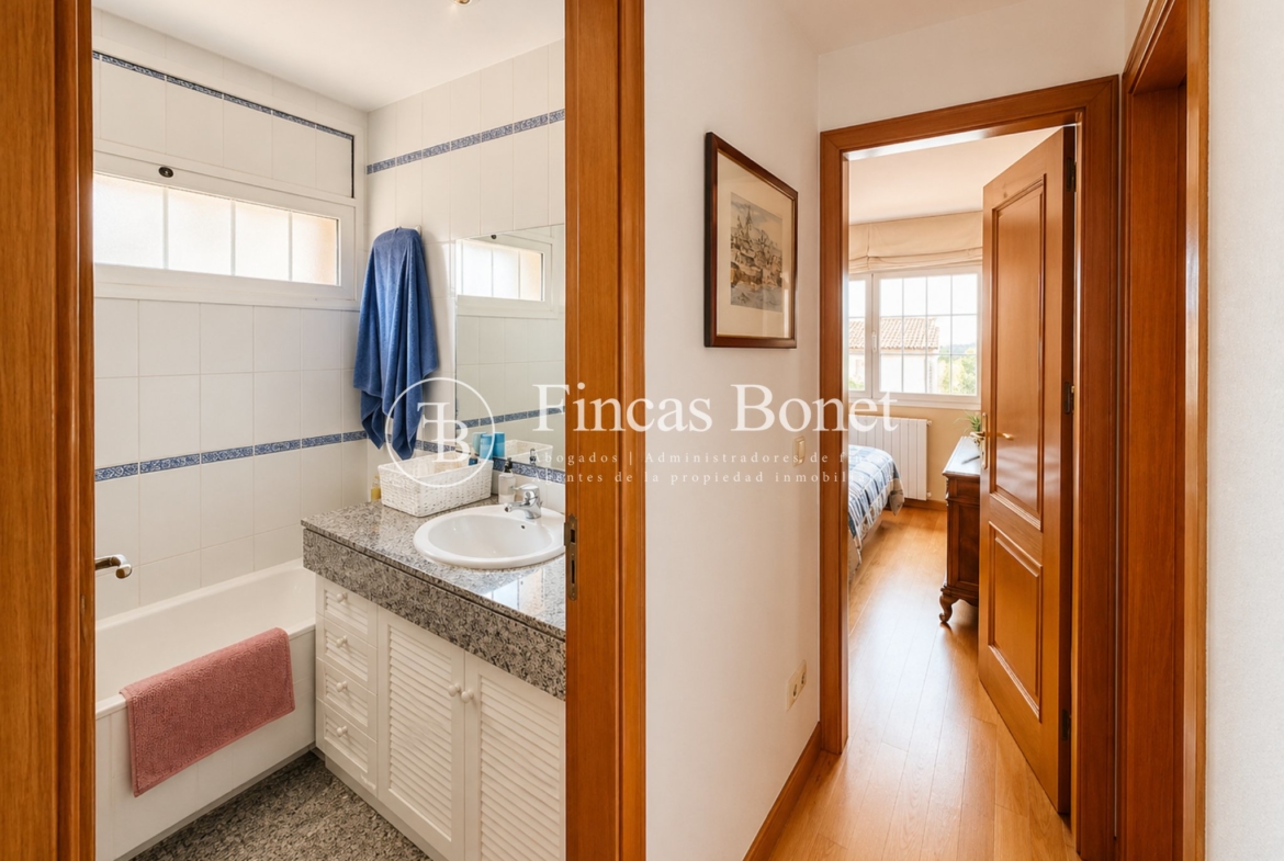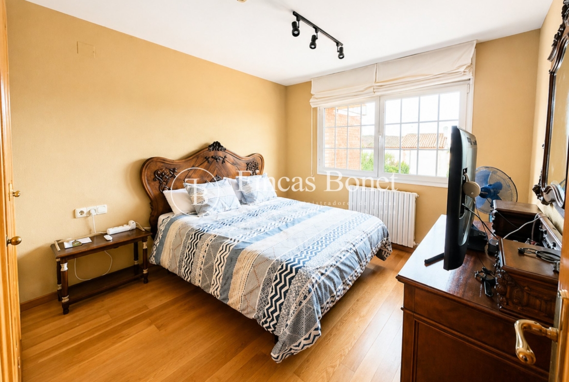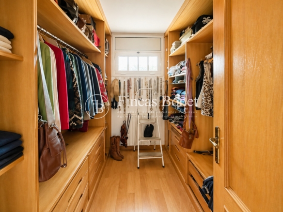 Mediante espectacular escalera interior accedemos a los cinco dormitorios y cinco baños, lo que da comodidad para familias numerosas o para recibir invitados. La habitación principal tipo suite, con mayor dimensión y baño integrado, generando un espacio más reservado dentro del conjunto.