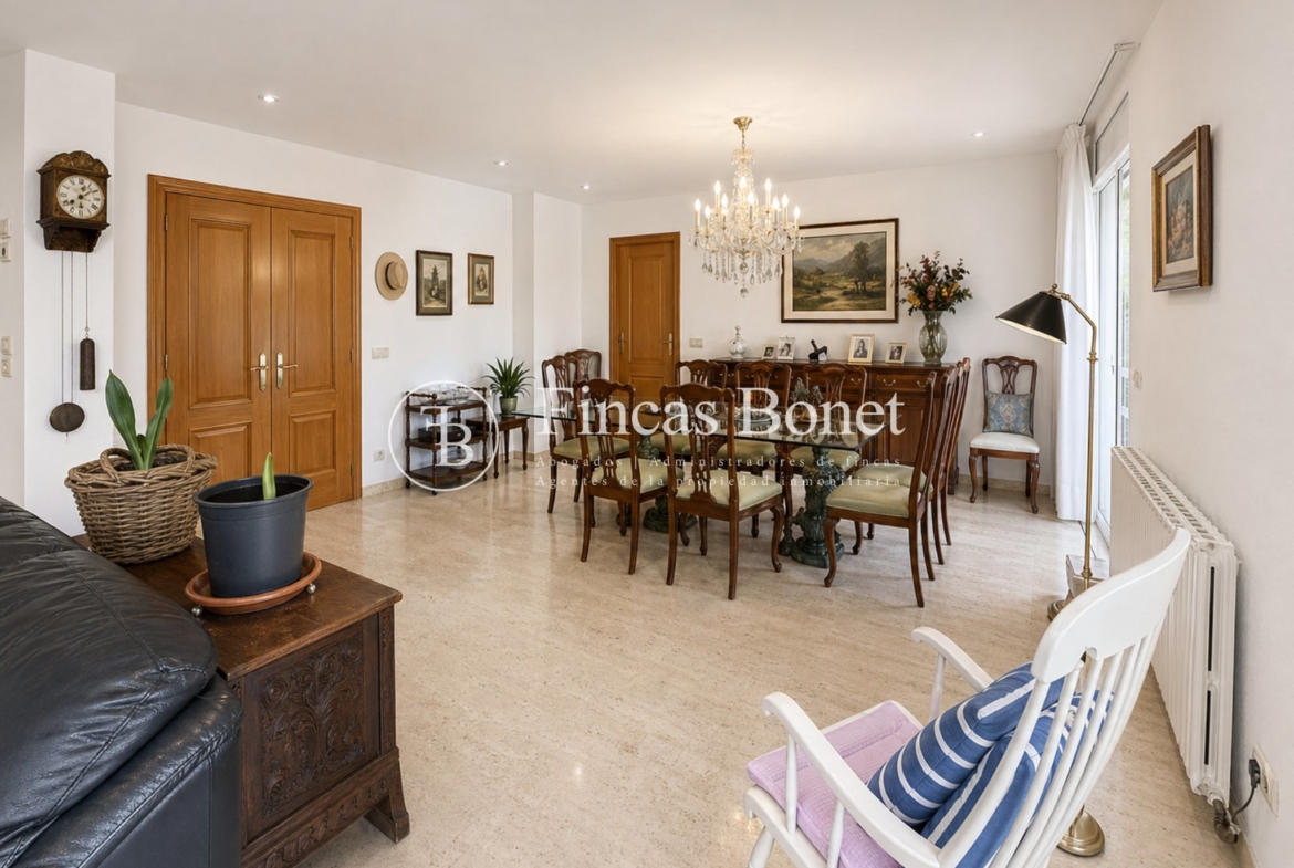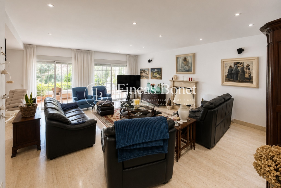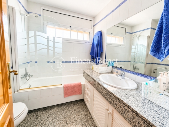 El área exterior es uno de los puntos fuertes del activo: jardín consolidado, piscina, varias terrazas, porche cubierto y zona de barbacoa. Todo ello orientado a maximizar el uso durante todo el año en un entorno de clima mediterráneo. A esto se suman vistas abiertas, con presencia de mar desde diferentes puntos.