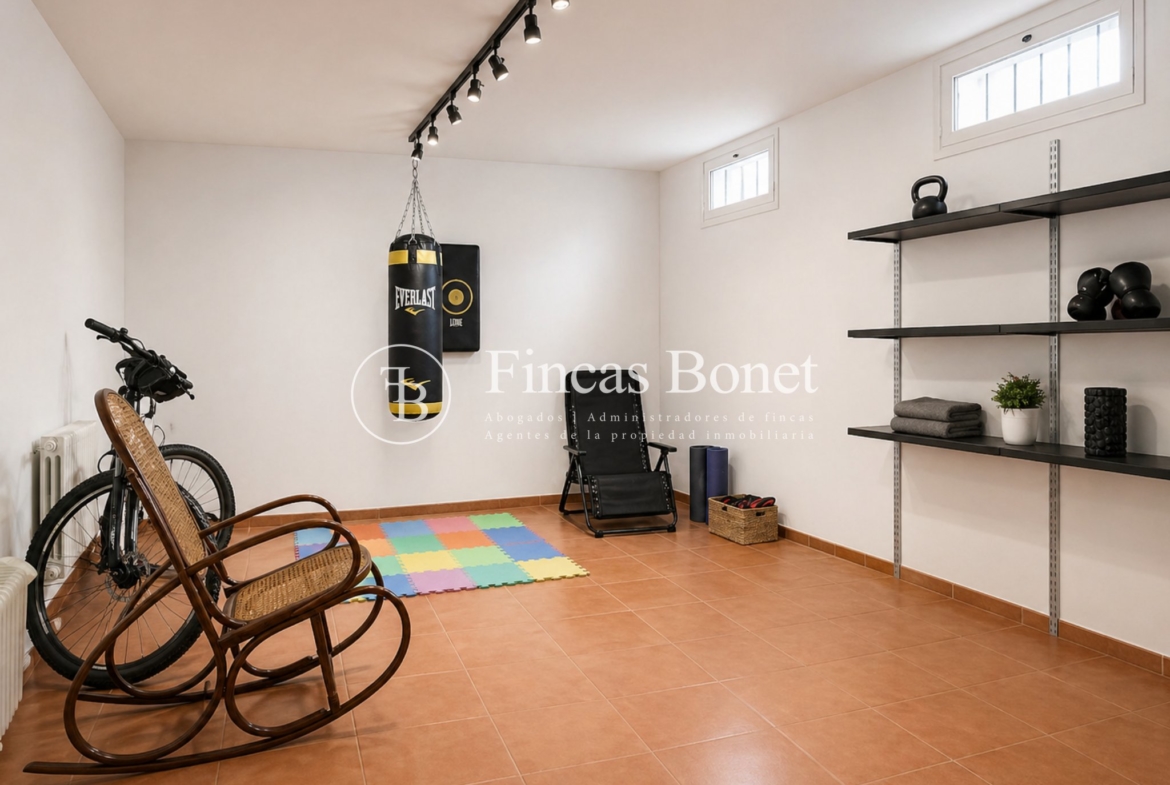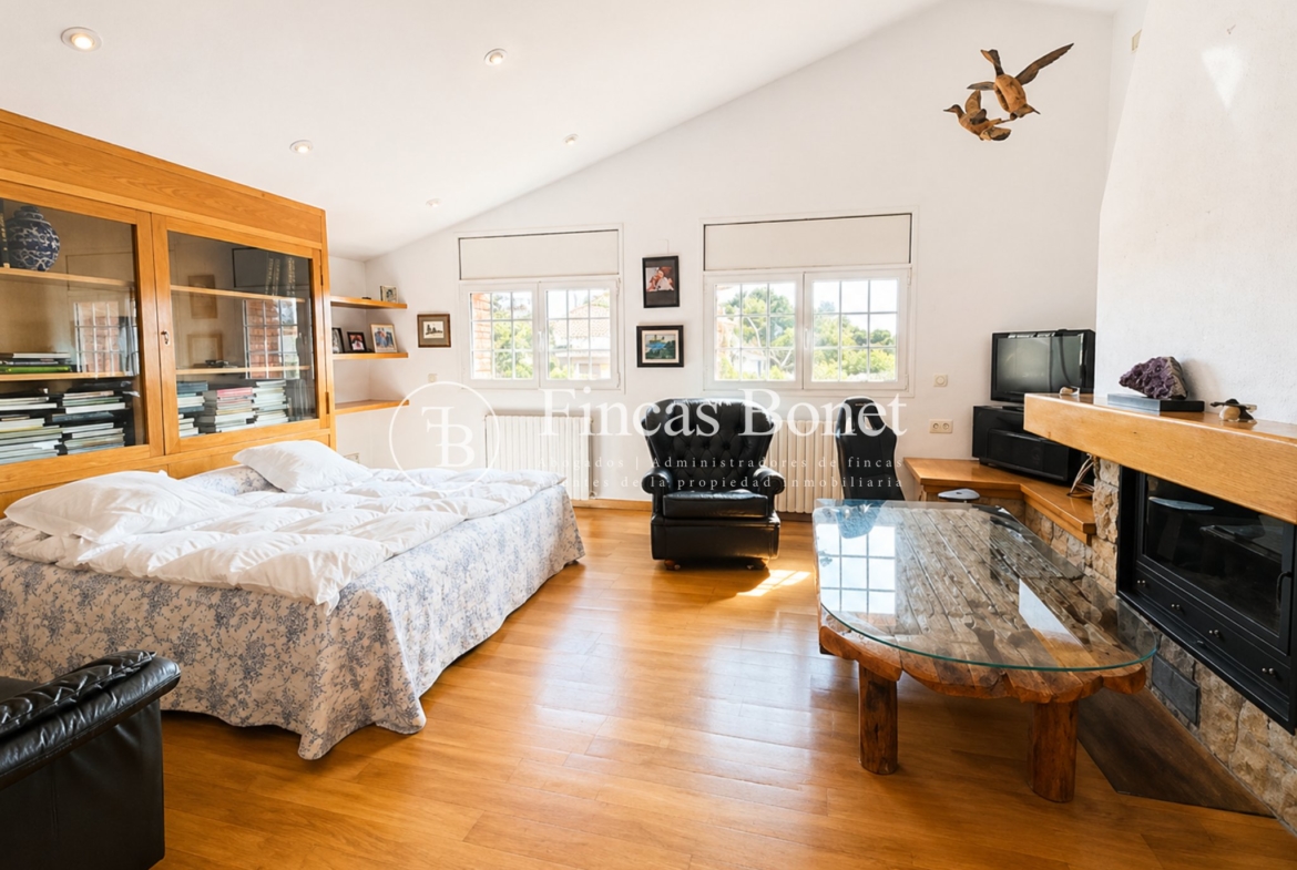 En paralelo, el inmueble integra diferentes áreas de gran valor añadido: Despacho independiente (apto para teletrabajo o uso profesional), gimnasio, bodega y una buhardilla con chimenea planteada como sala polivalente (ocio, reuniones o zona privada).