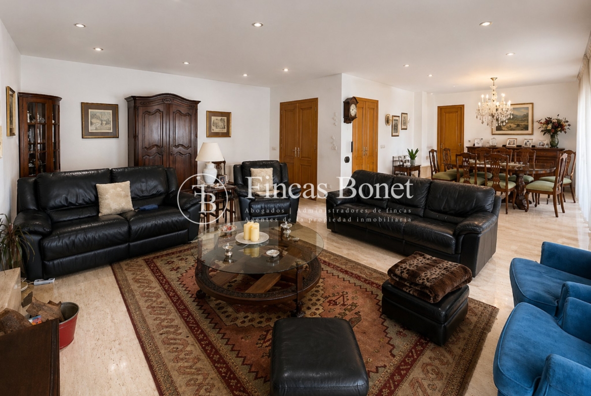 Entrando en la vivienda nos encontramos hall distribuidor. La zona de día con amplio salón-comedor de gran tamaño 60 metros2 aproximadamente con chimenea y buena entrada de luz natural, concebido como núcleo principal de la vivienda y con conexión fluida hacia el exterior.