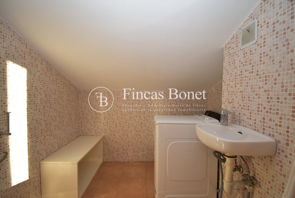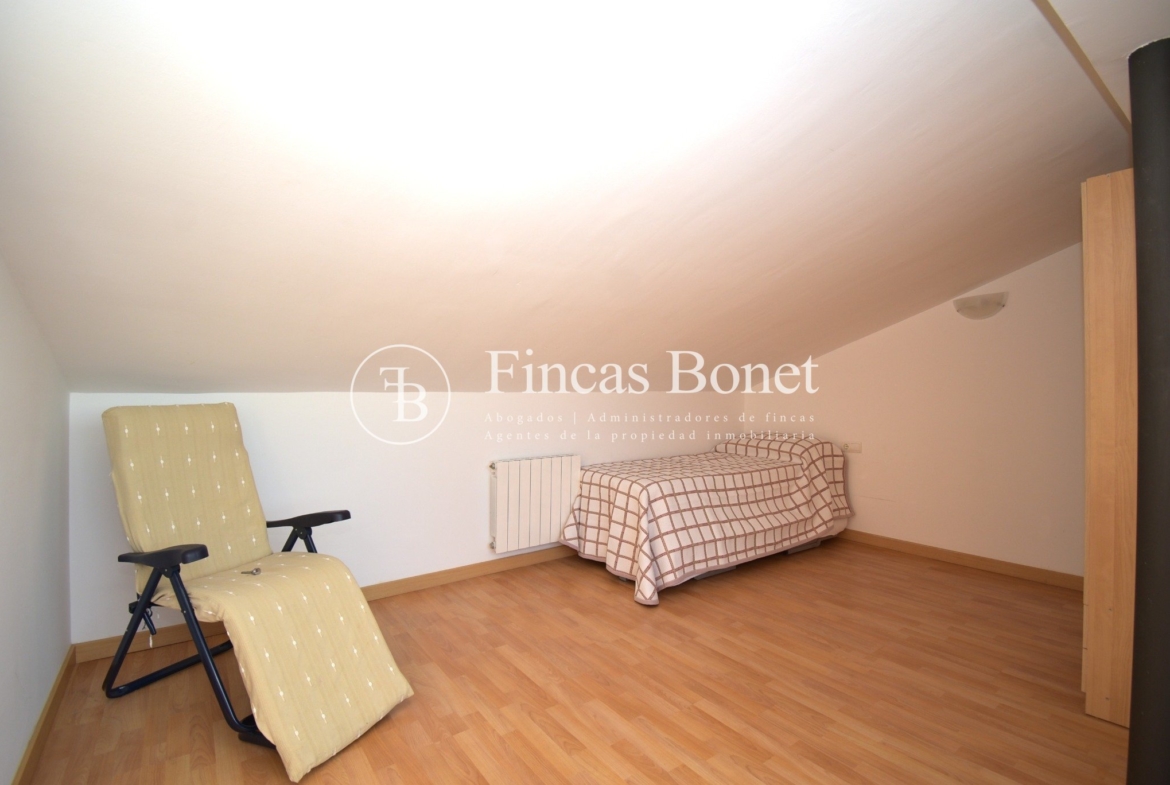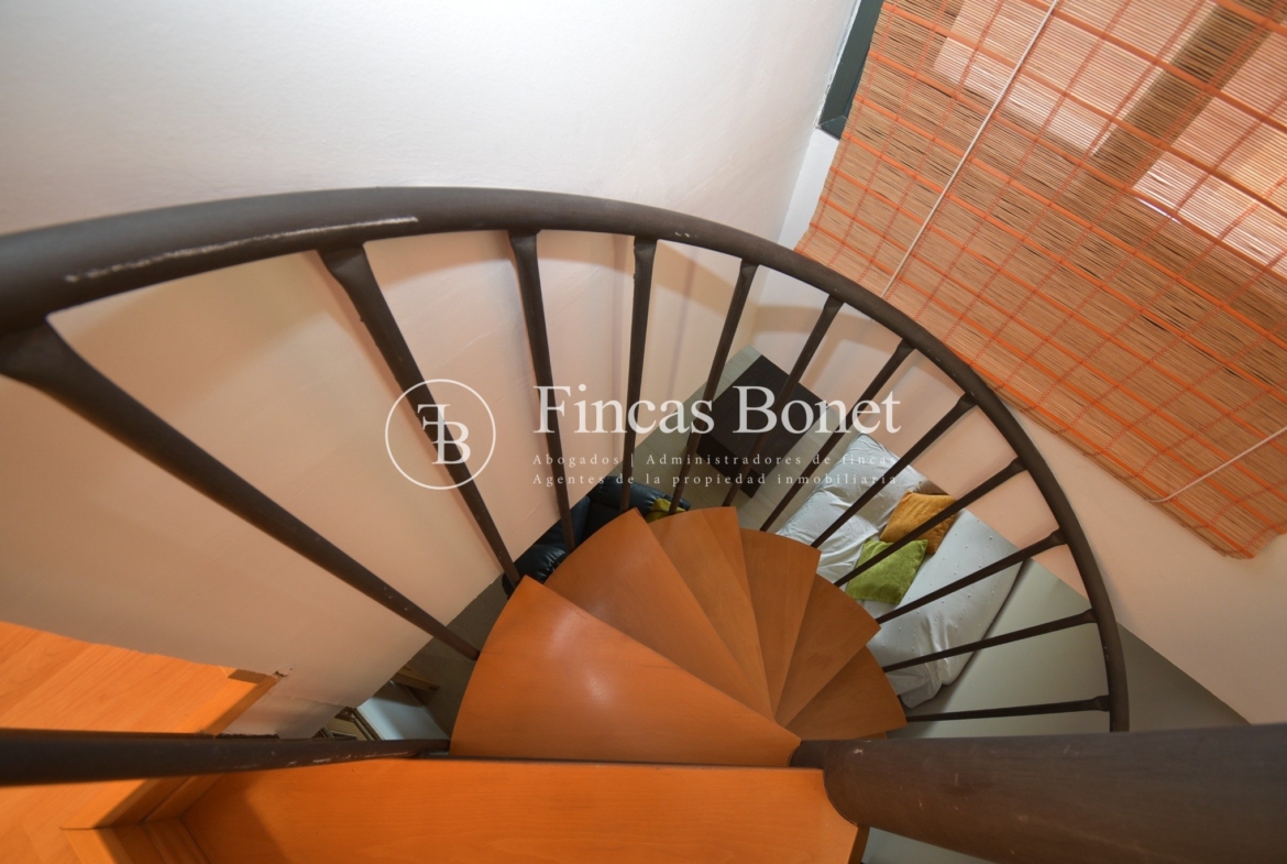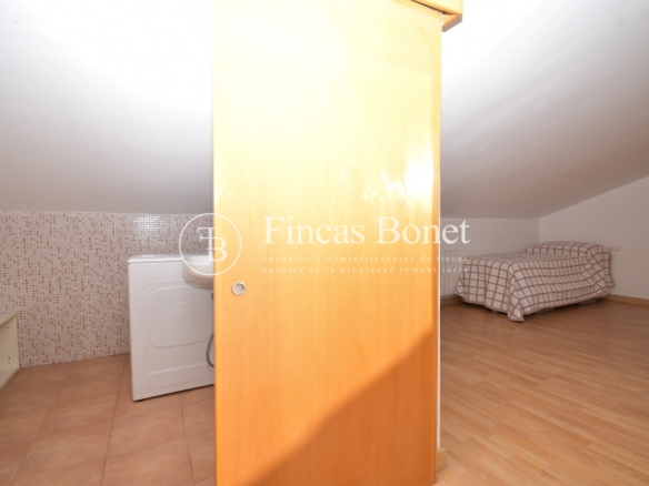(anteriormente pasillo de entrada y habitación individual). De comedor podemos salir a balcón de 2,96 metros2. Cocina independiente. Dos dormitorios (principal con armario empotrado), baño con plato de ducha. Mediante escalera interior subimos a planta bajo cubierta donde encontramos amplia sala con salida a gran terraza de 16,19 metros2 y baño con ducha.