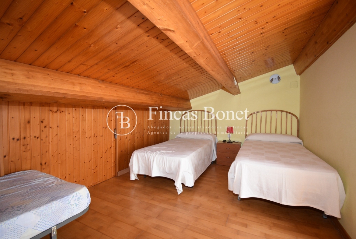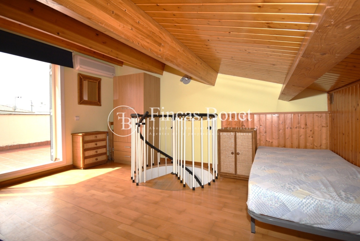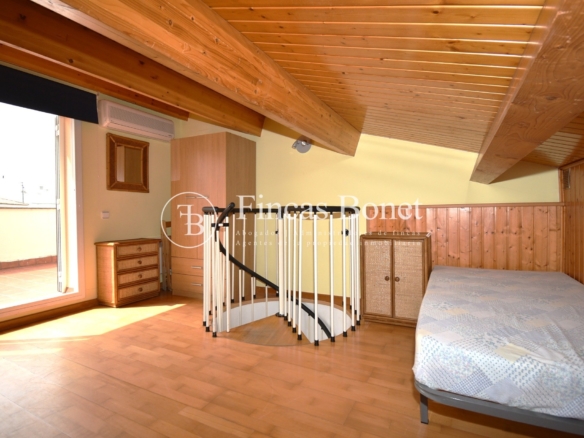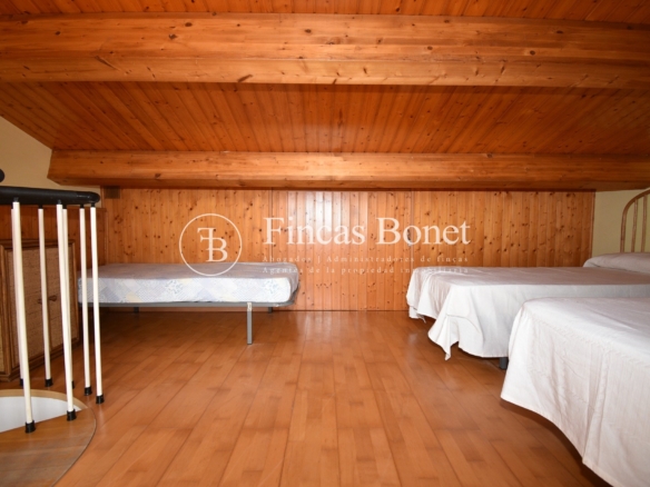 En planta primera: 50 m2. Zona de día con comedor del cual se accede a balcón. Cocina. Habitación de matrimonio y una segunda doble y baño. Mediante escalera interior de madera accedemos a un segundo piso de 23m2 planta bajo cubierta donde encontramos una habitación -buhardilla con ventanal que da paso a gran terraza y baño con plato de ducha.
