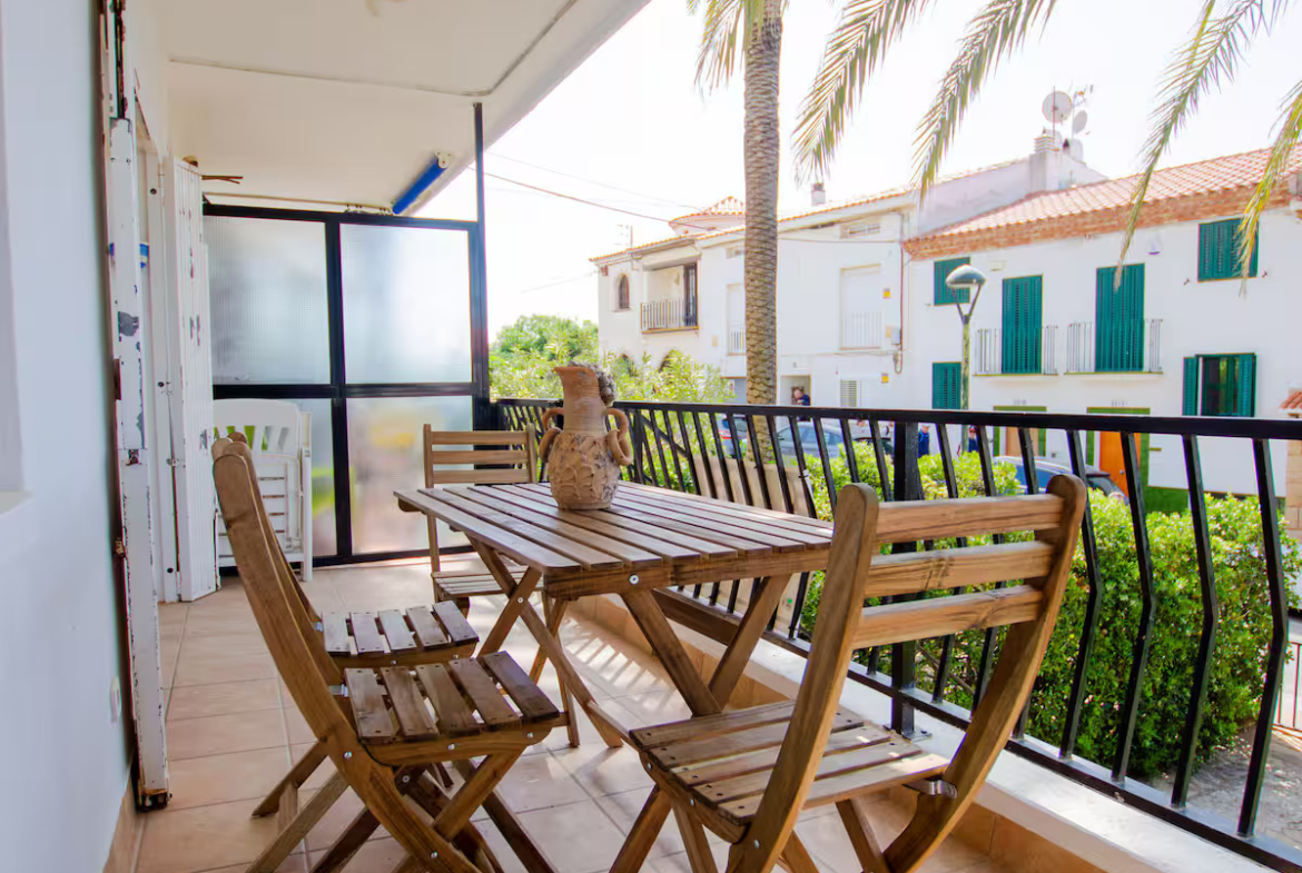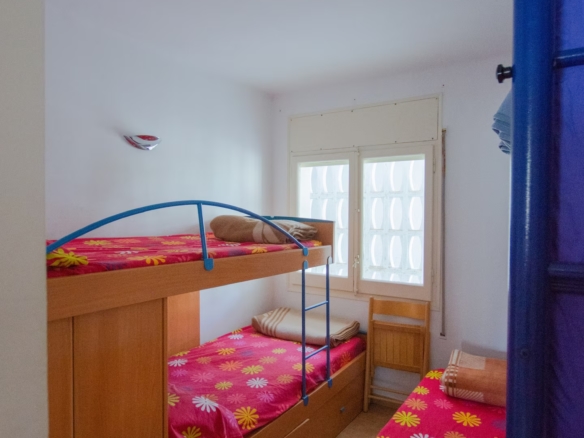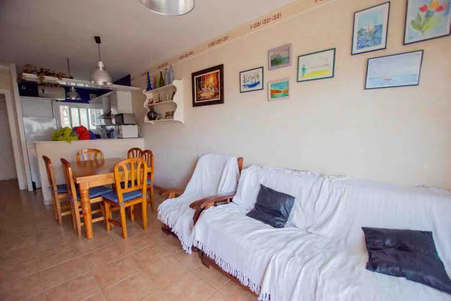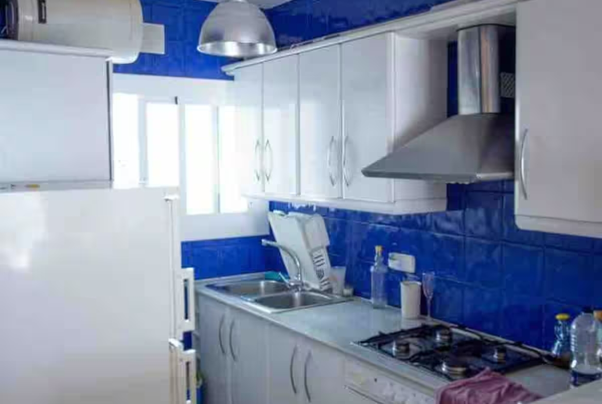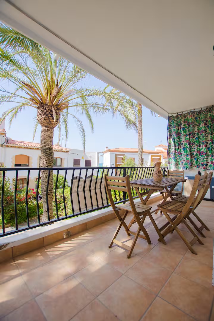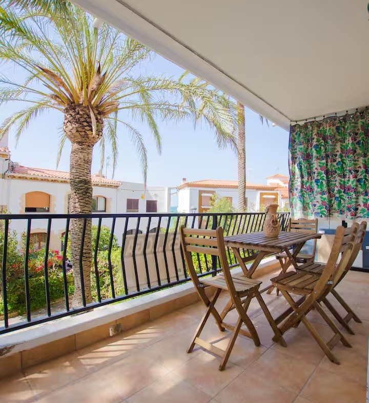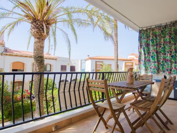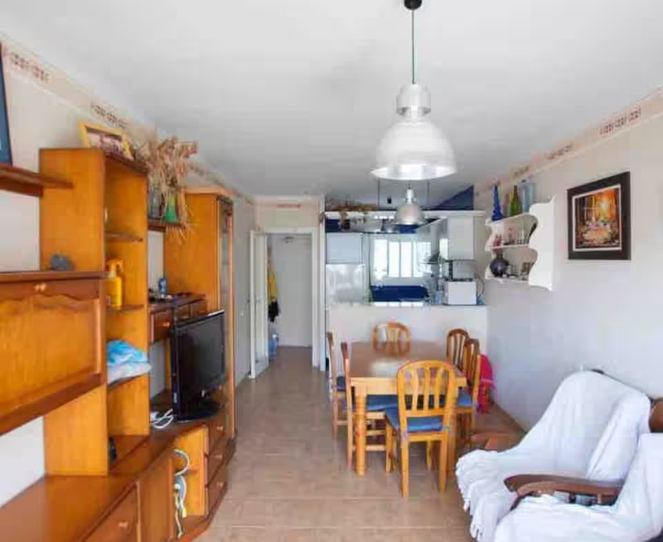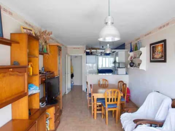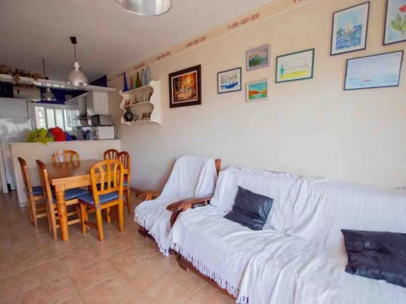 con salida a terraza y mediante un pequeño tramo de escalera, en este acogedor apartamento orientado al sur aprovechando el soleado clima mediterráneo.