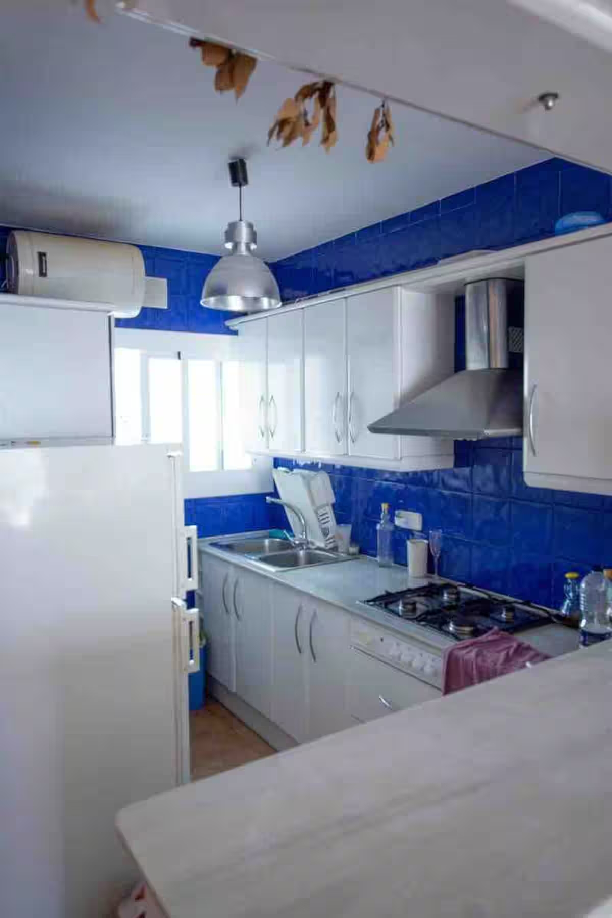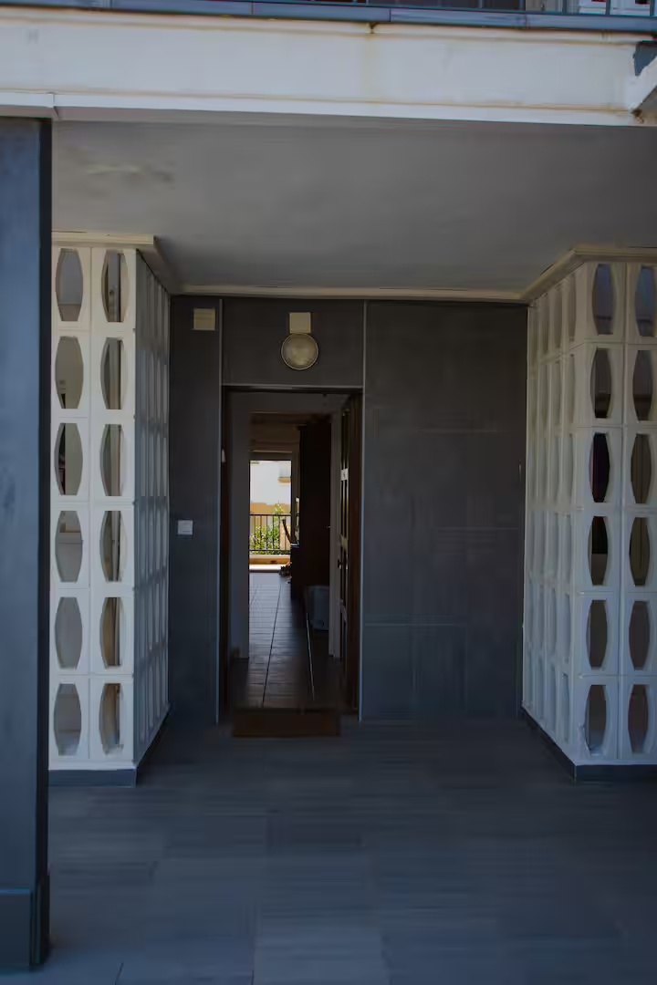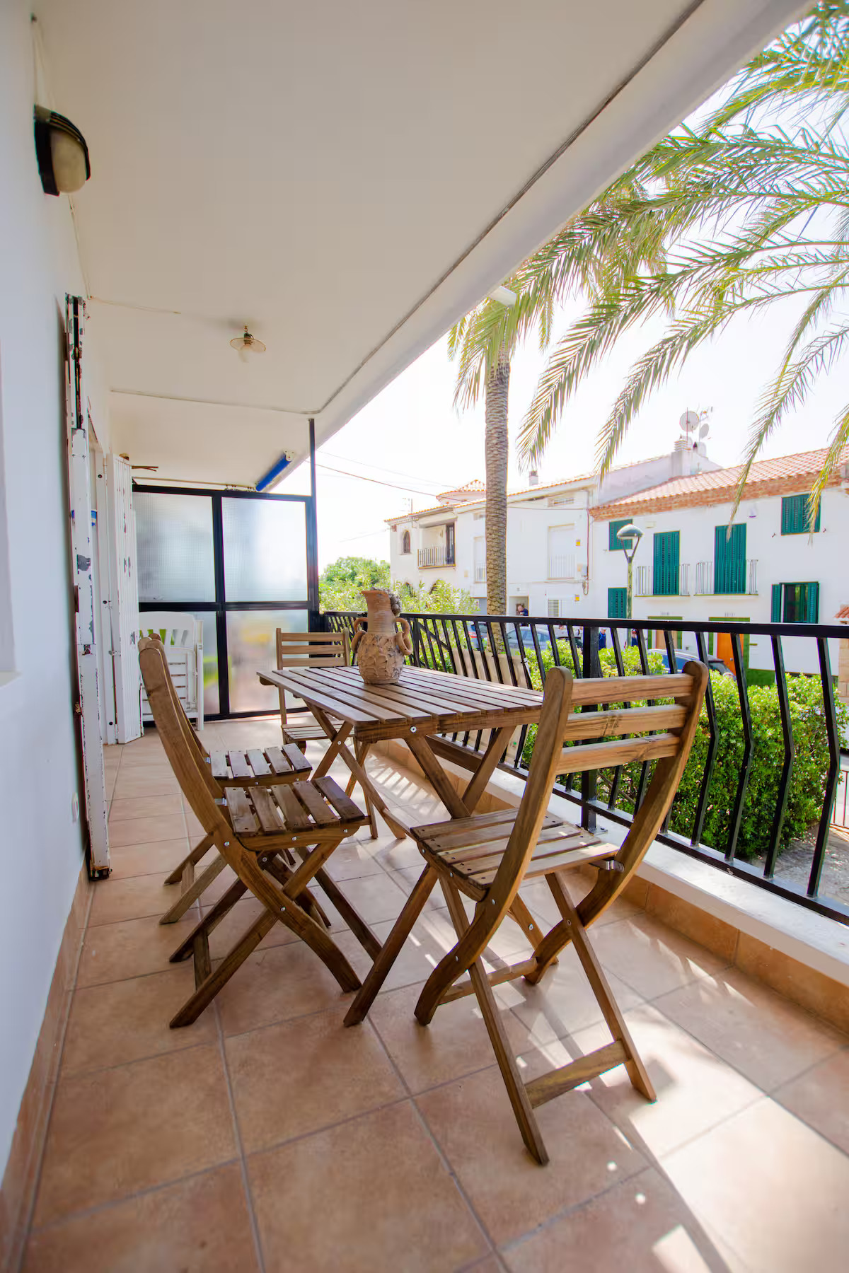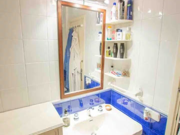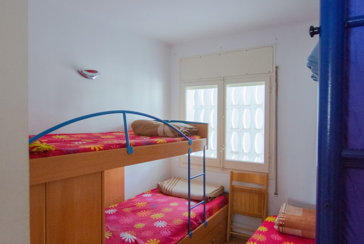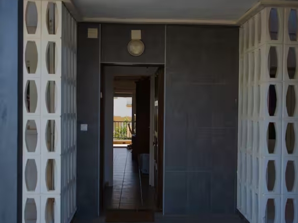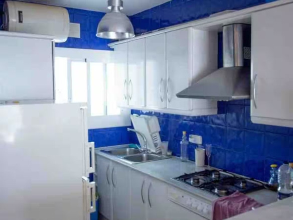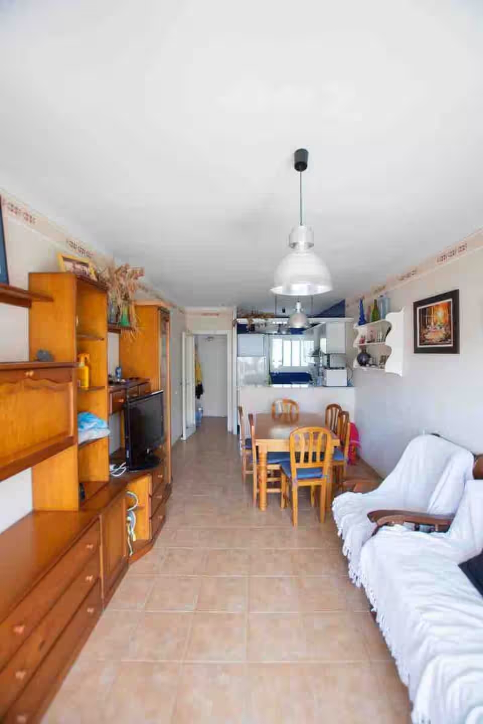 con salida a terraza y mediante un pequeño tramo de escalera, en este acogedor apartamento orientado al sur aprovechando el soleado clima mediterráneo.