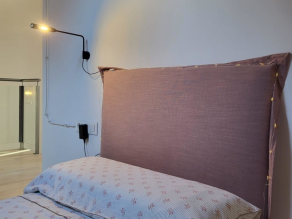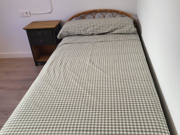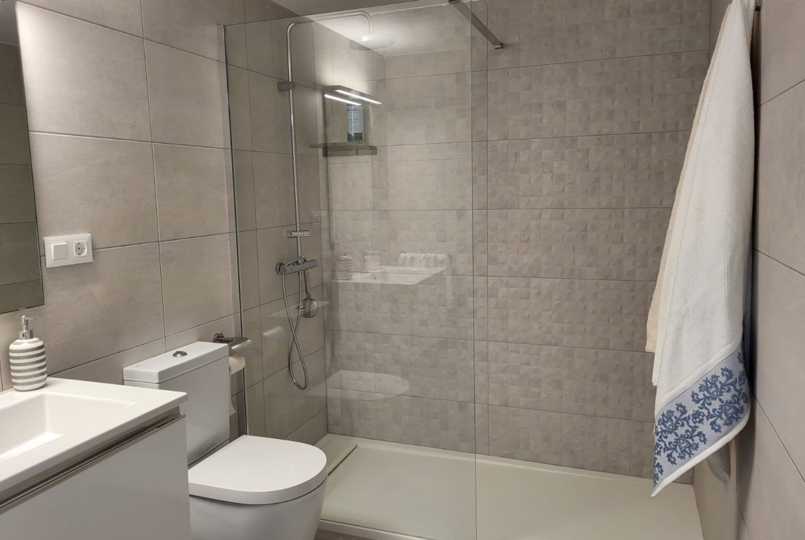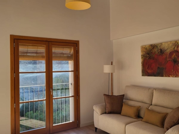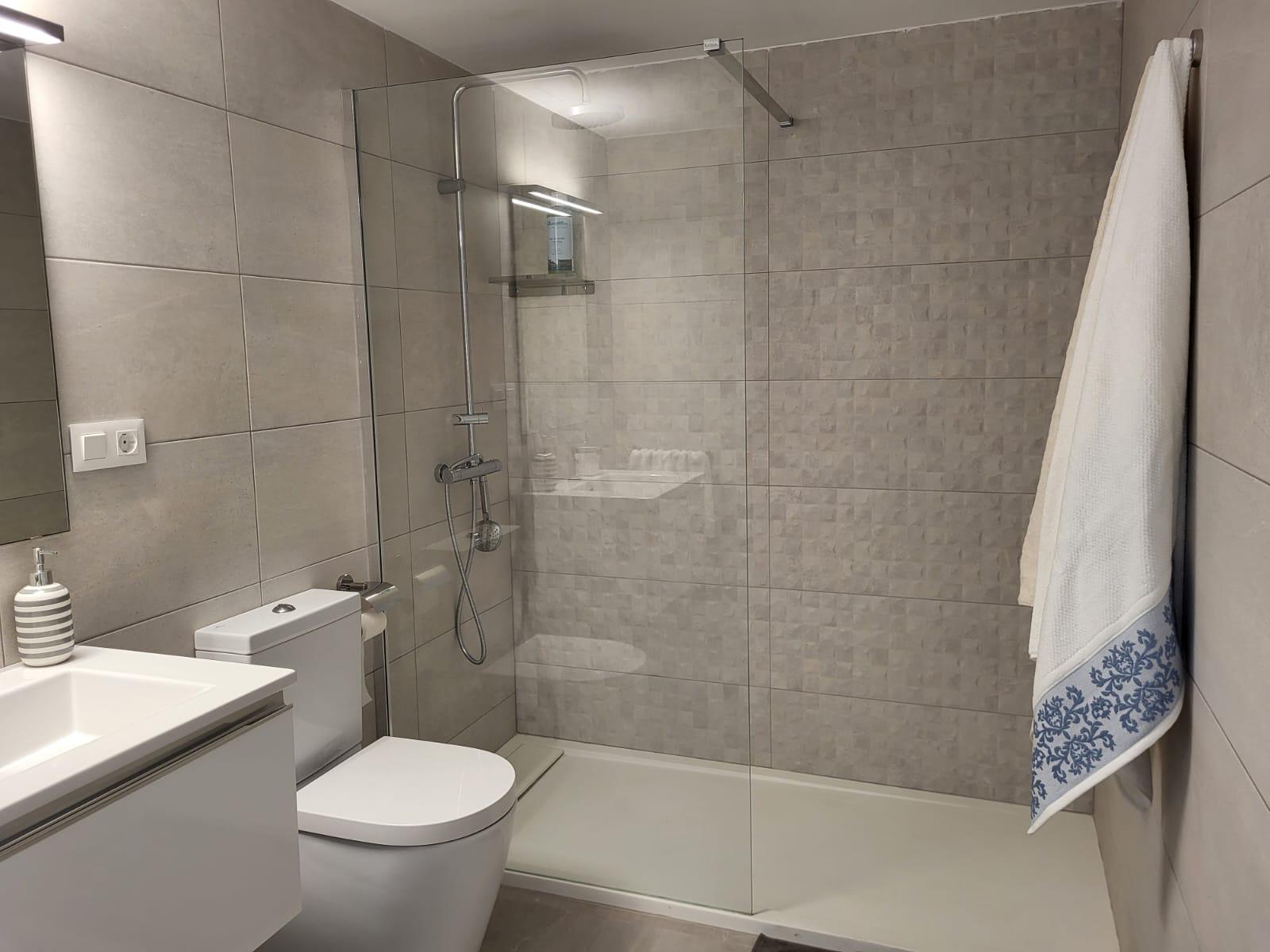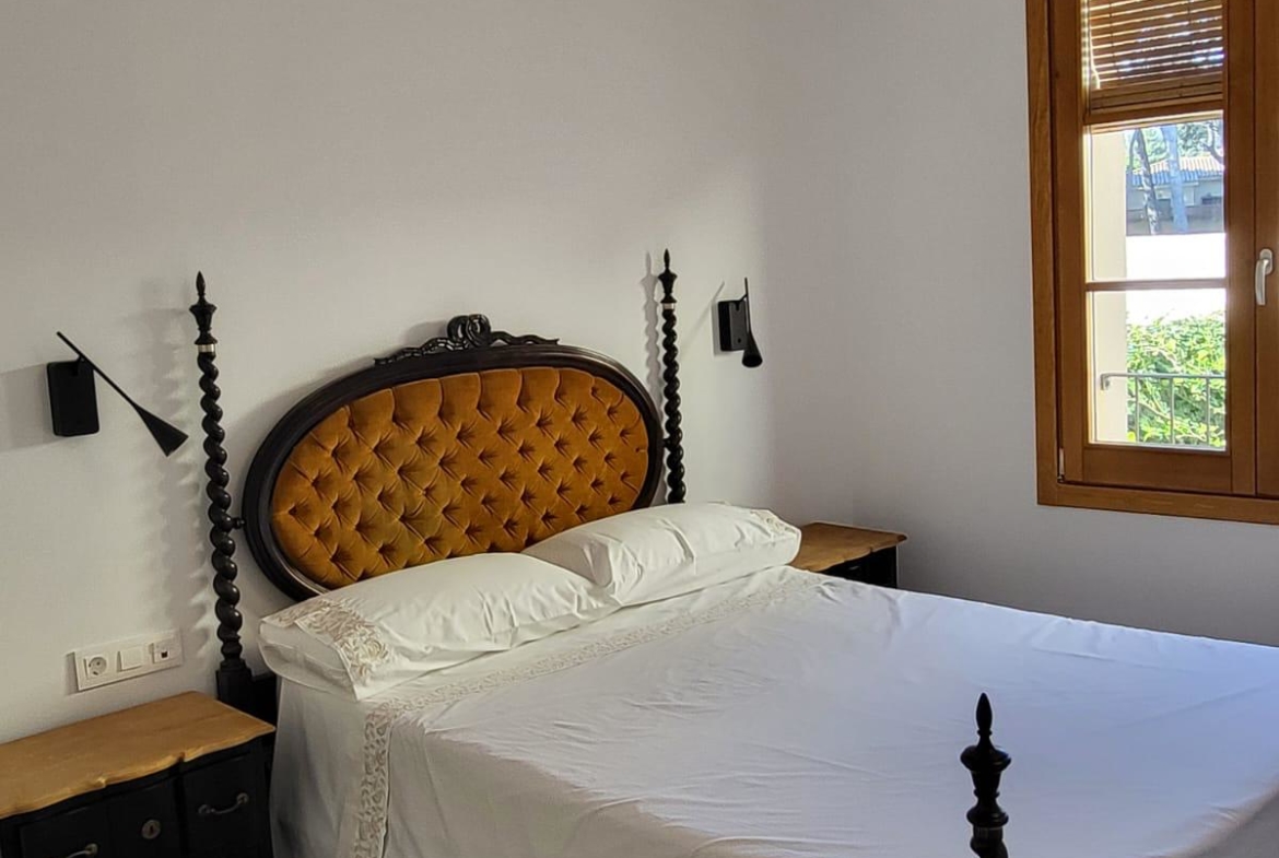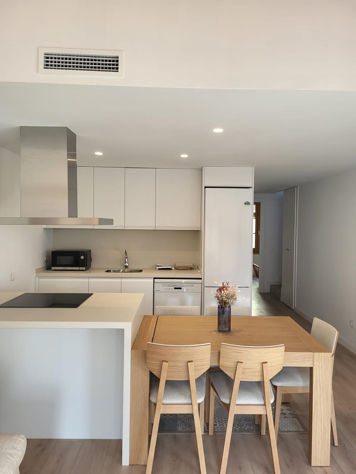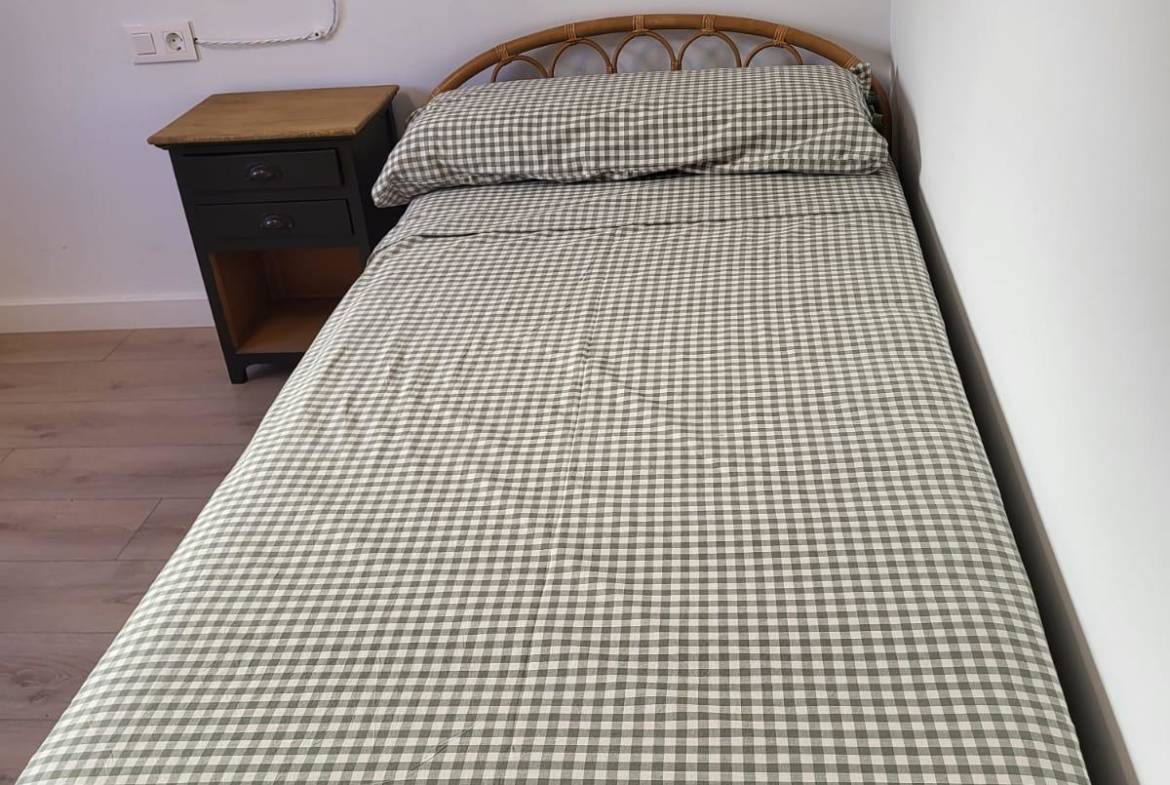 Cocina abierta. Habitación de matrimonio y una segunda doble también en planta. Baño con plato de ducha.