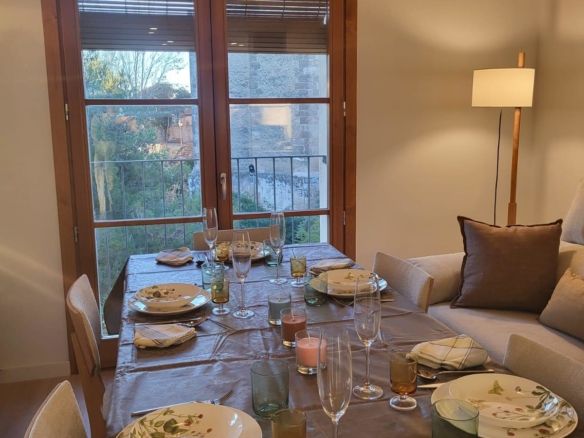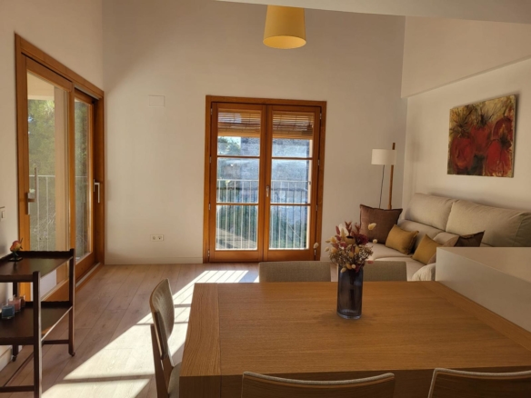 Zona de día con comedor del cual se accede a terraza con vistas excepcionales a la iglesia de Altafulla.