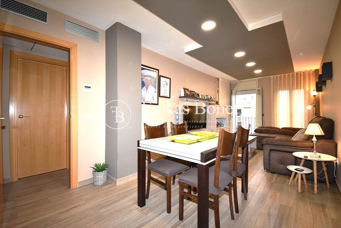 Comedor del cual se accede a balcón. Cocina. Habitación de matrimonio tambien con balcón y una segunda doble y baño con amplio plato de ducha. Destacar de este piso los cerramientos de aluminio con cámara aislante, aire acondicionado y bomba de calor por conductos. Plaza de parking de 24,17 metros2 en el mismo edificio y trastero junto a la plaza de parking de 6,22metros2.