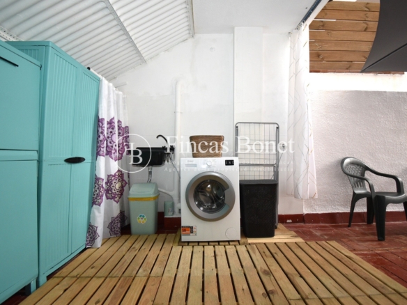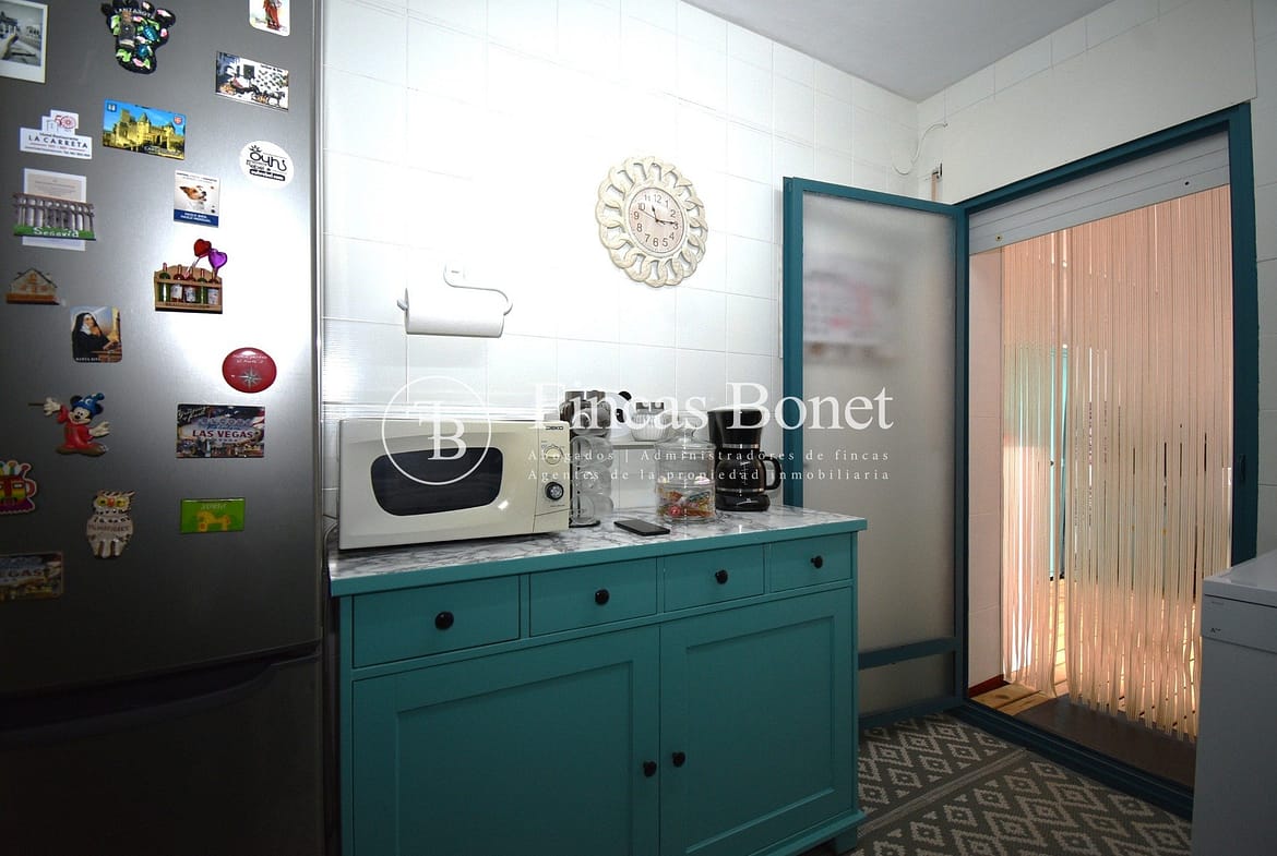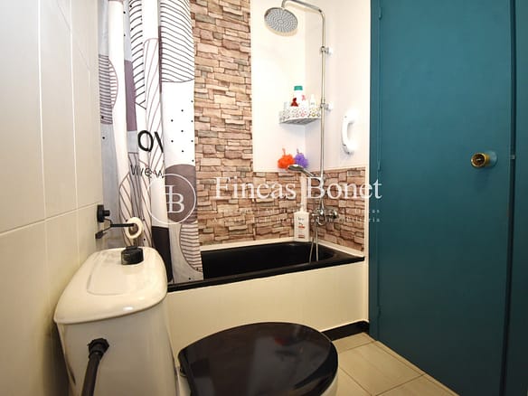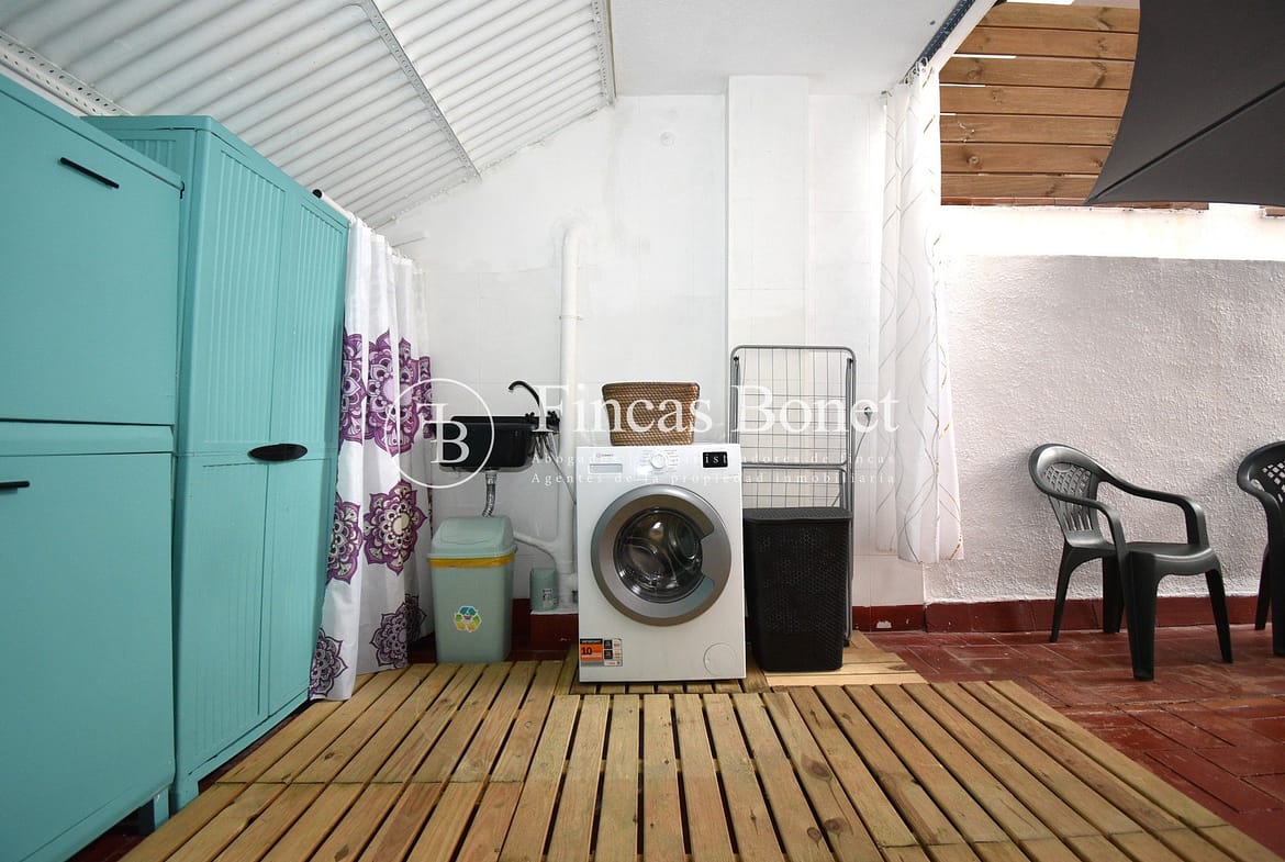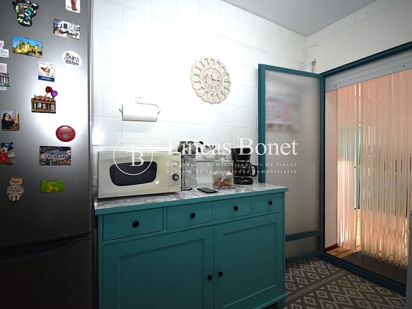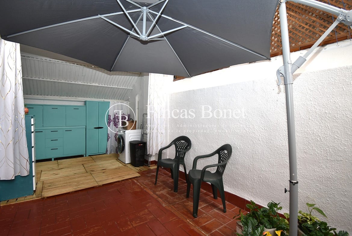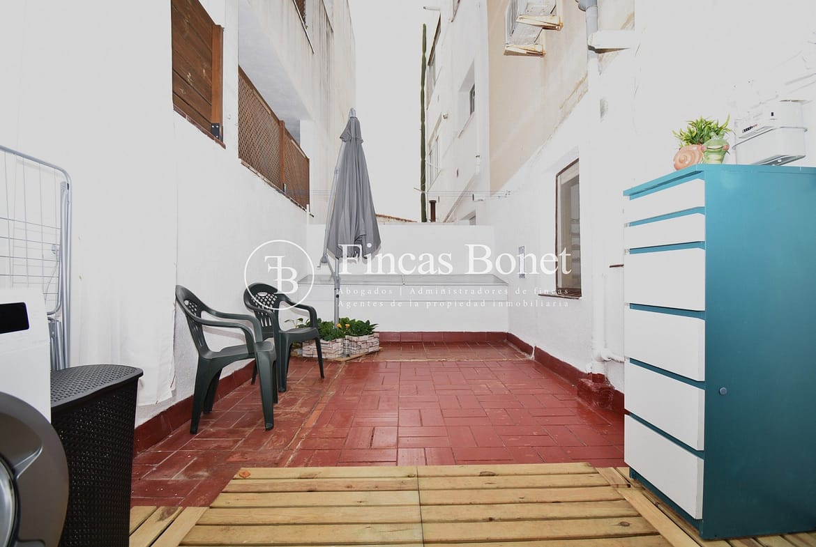Entrando a la derecha encontramos comedor con ventana y a la izquierda cocina con salida a agradable patio de 18 metros2 donde poder hacer vida y donde está la zona de aguas. Dispone de dos habitaciones dobles una de ellas con armario empotrado y un baño con bañera.