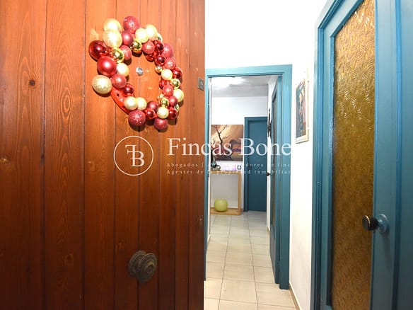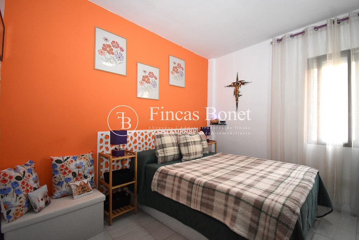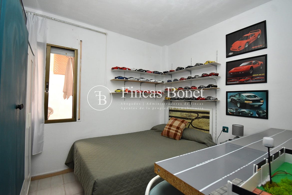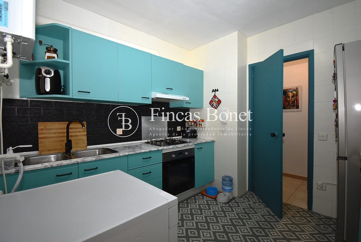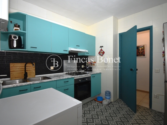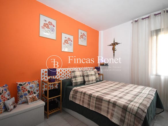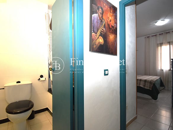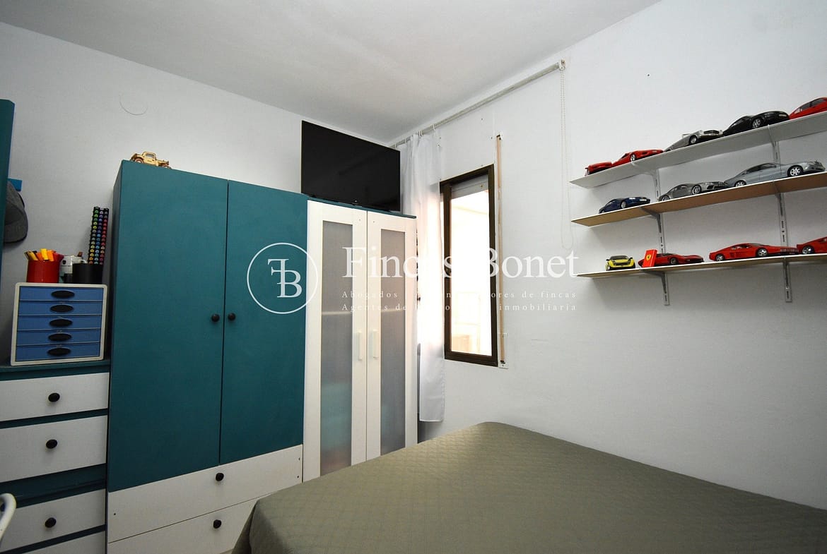 Entrando a la derecha encontramos comedor con ventana y a la izquierda cocina con salida a agradable patio de 18 metros2 donde poder hacer vida y donde está la zona de aguas. Dispone de dos habitaciones dobles una de ellas con armario empotrado y un baño con bañera.