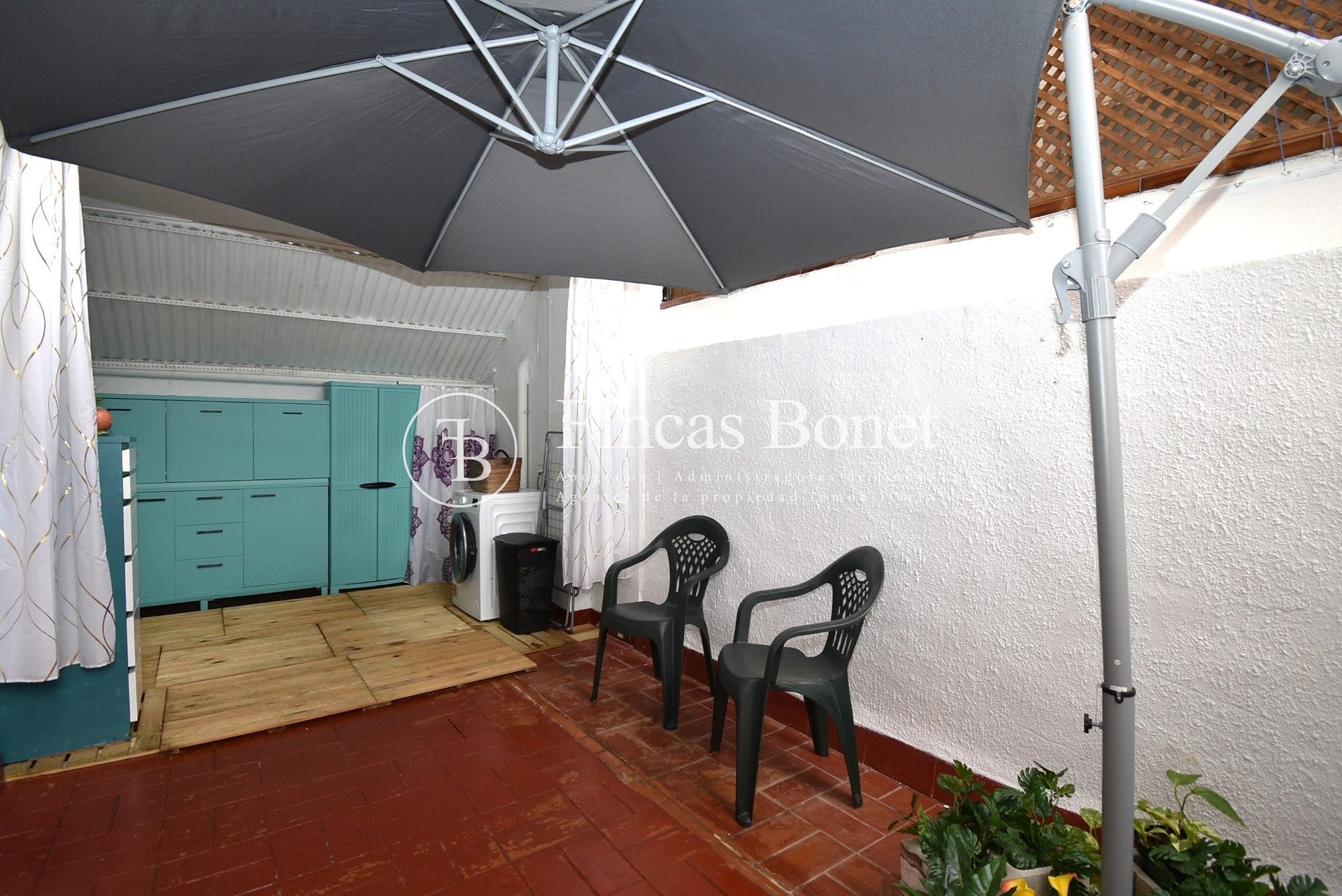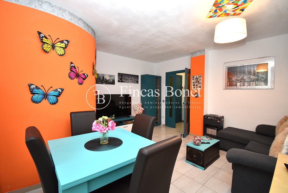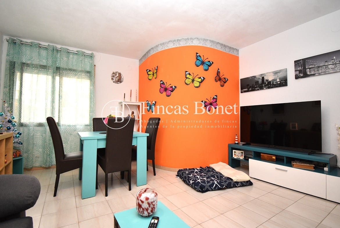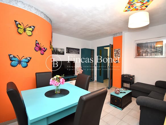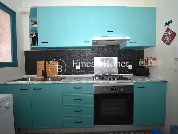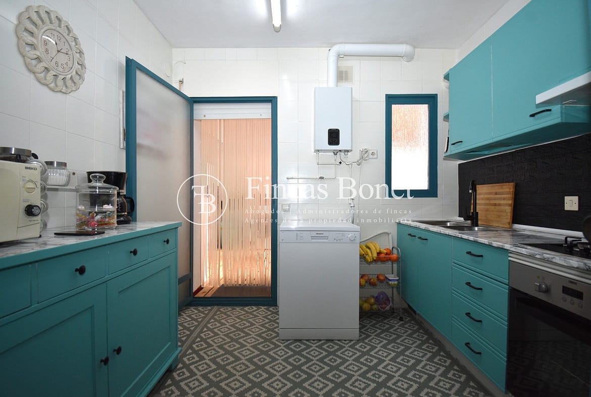 Entrando a la derecha encontramos comedor con ventana y a la izquierda cocina con salida a agradable patio de 18 metros2 donde poder hacer vida y donde está la zona de aguas. Dispone de dos habitaciones dobles una de ellas con armario empotrado y un baño con bañera.