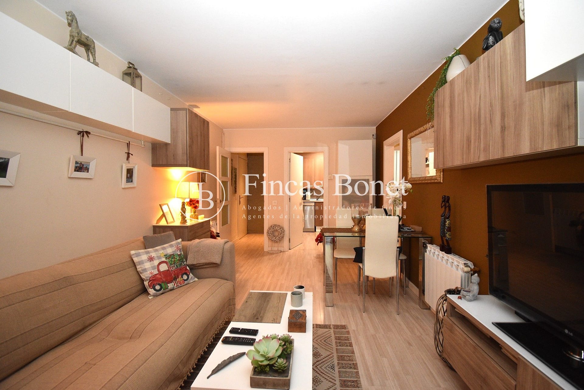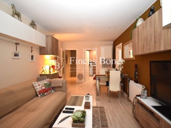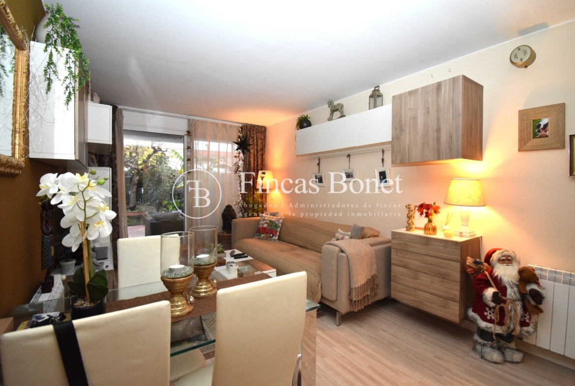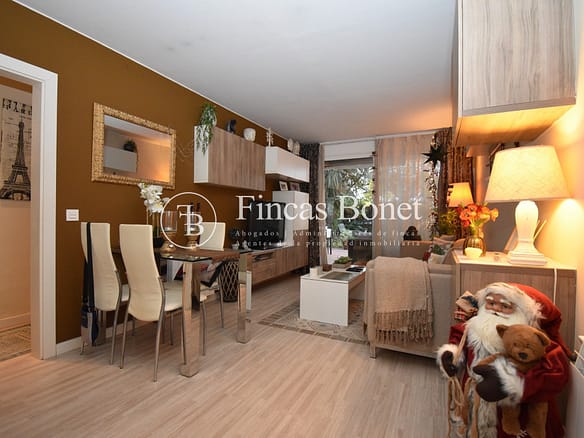 Comedor salón con amplio ventanal en fachada frontal, que facilita el acceso al jardín desde dicha dependencia. Cocina independiente totalmente equipada, un dormitorio doble, segundo dormitorio individual y 1 baño con plato de ducha.